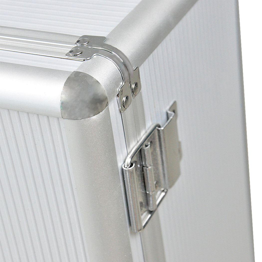 DESCRIPTIONThe highly durable Aluminium CD Storage Case will prevent you from scratching or cracking your discs that nearly everyone has made the mistake. It is very frustrating to have your disc damaged and you can?t save at that point any longer. Our aluminium CD case will ensure you that your music, games, movies, or anything you save in the disc will be safe for years to come. The heavy-duty CD case is made of aluminium with black velvet lining giving it a sturdy structure, light in weight and a chic look all at one time. The case comes with 120/250/500 inserts, depending on the model, and each can hold 2 discs giving it a maximum capacity of 240/500/1000 discs. The inserts have index labels to ensure easy selection and reference. Place your order today to organise your collection and retrieve your discs in an instant!